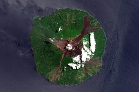 На снимке, принятом со спутника Sentinel 27 августа 2023 года остров Манам в Папуа-Новой Гвинеи.